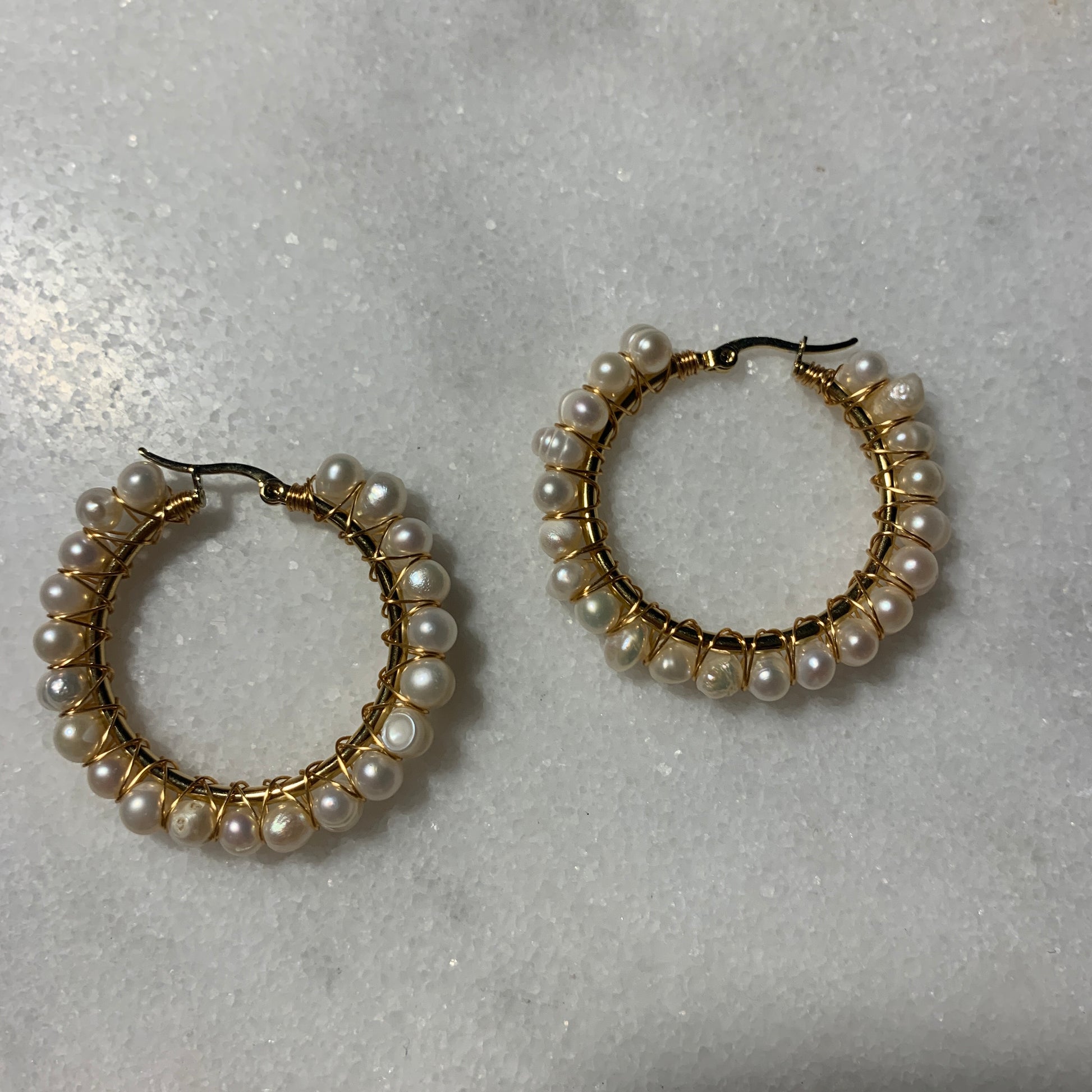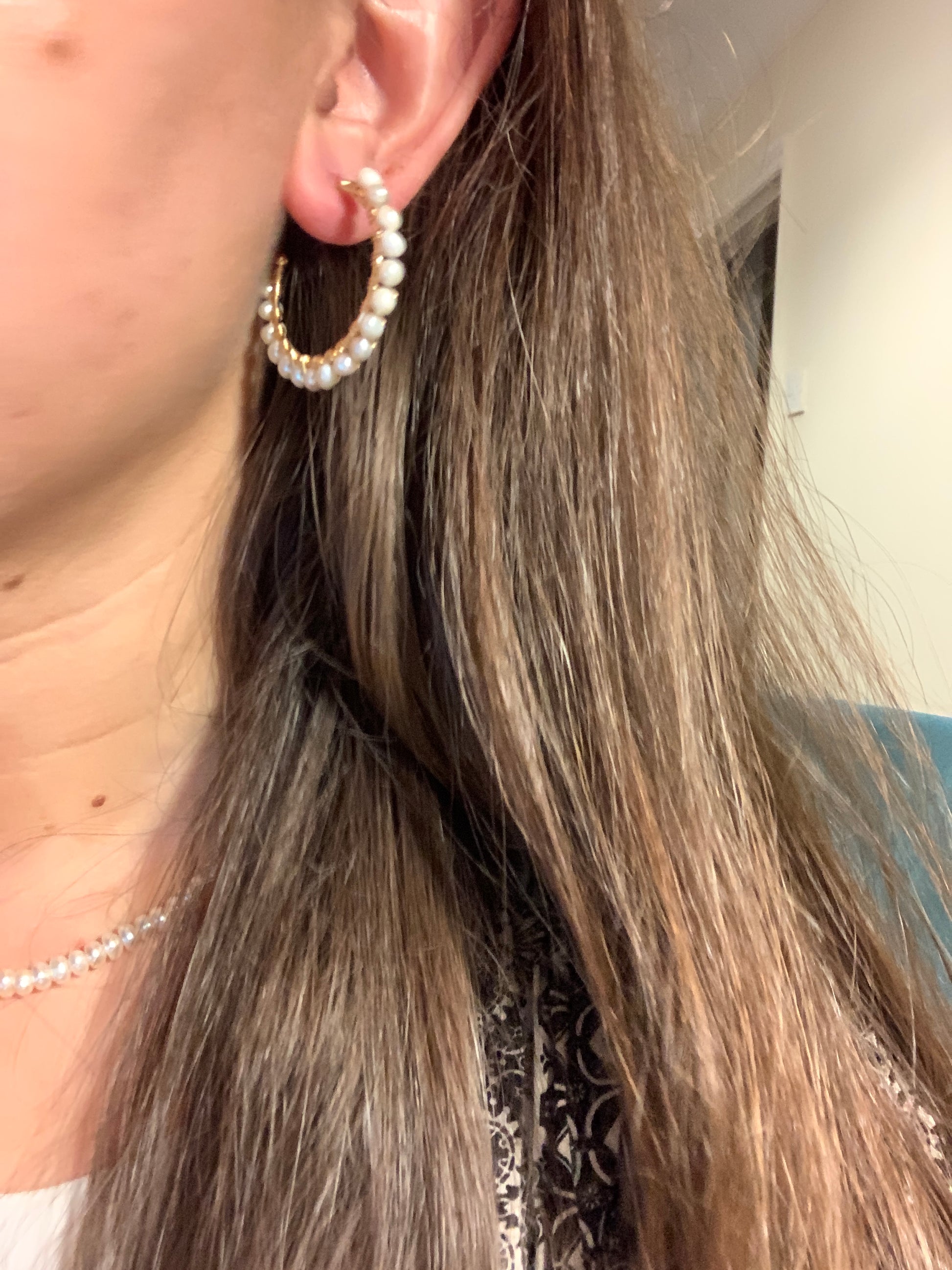 Aros de perlas de agua dulce chapados en oro, el aro más lindo para todos los días. Estos aros son la combinación perfecta de elegancia y encanto. Con un toque de baño de oro y encantadoras perlas de agua dulce, agregarán algo extra a tu look diario. (¡Son tan lindos que tal vez quieras usarlos todos los días!)