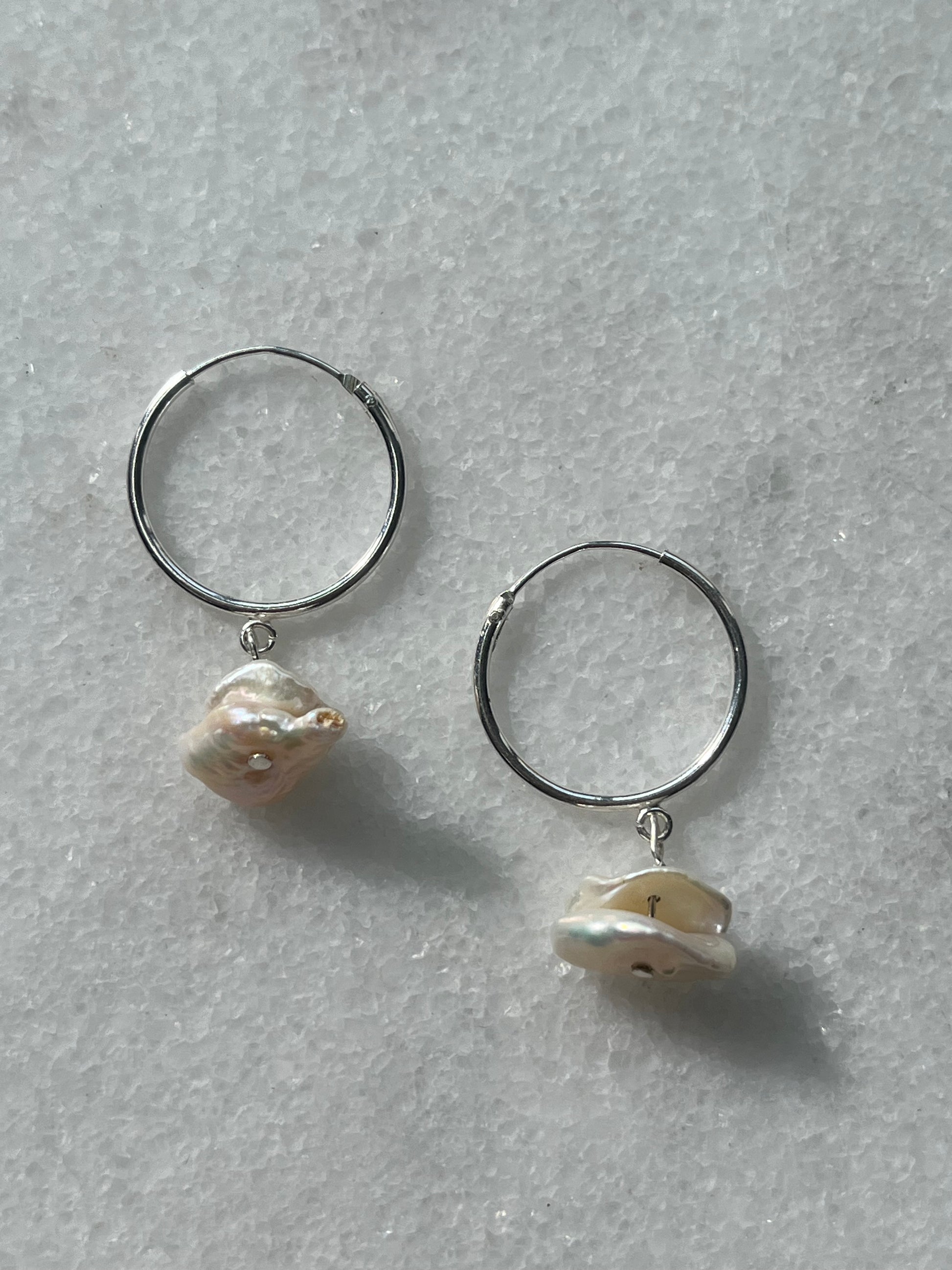 Pendientes de perlas de agua dulce hechos a mano con acabados en plata de primera ley. Perfecto para usar todos los días y resistente al deslustre.