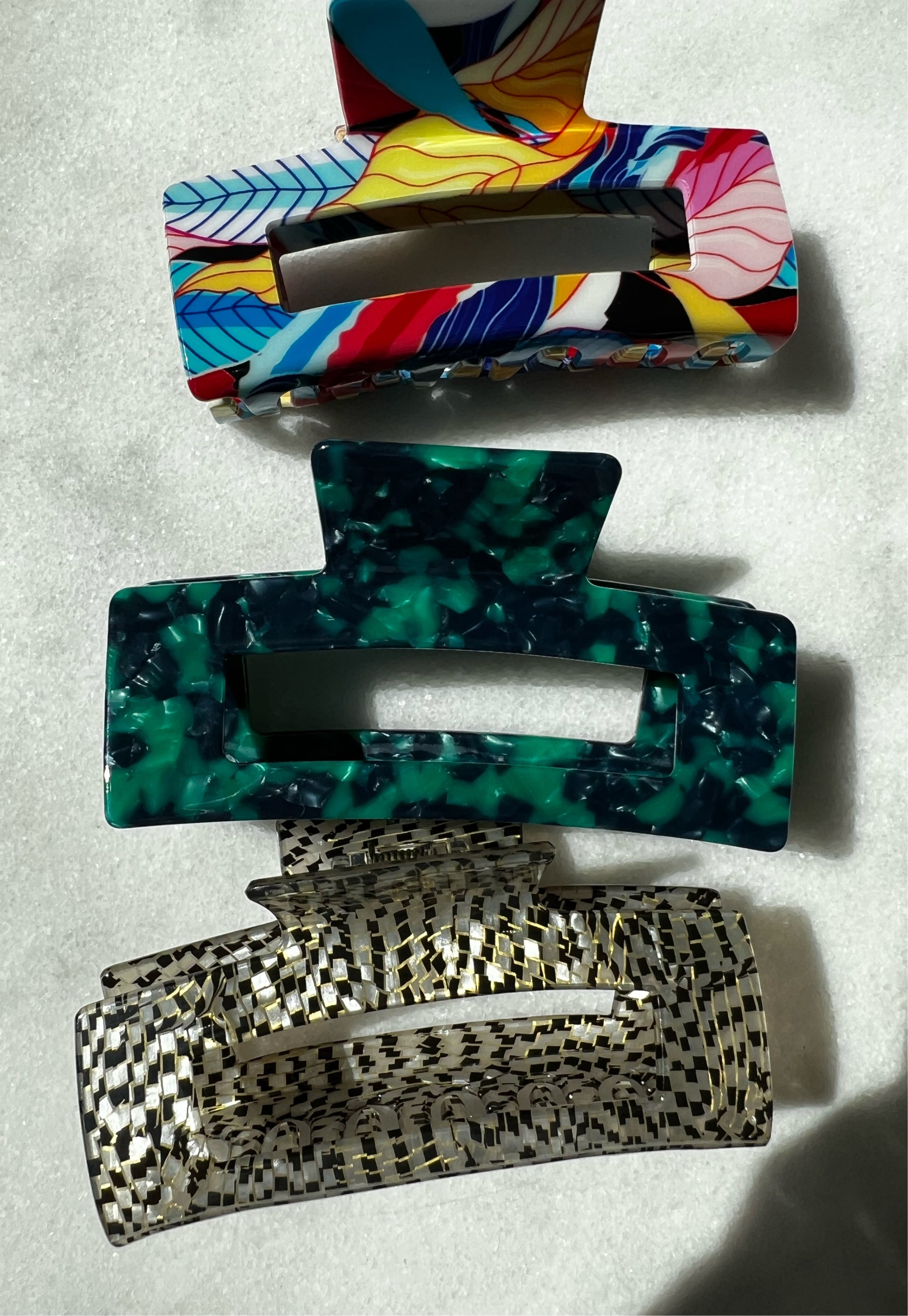 La elegante pinza para el cabello clásica está hecha de acetato de la mejor calidad y diseñada para sujetar perfectamente tu cabello. Lo mejor para quienes tienen cabello largo o grueso, es súper versátil y perfecta para recoger todo el cabello.
