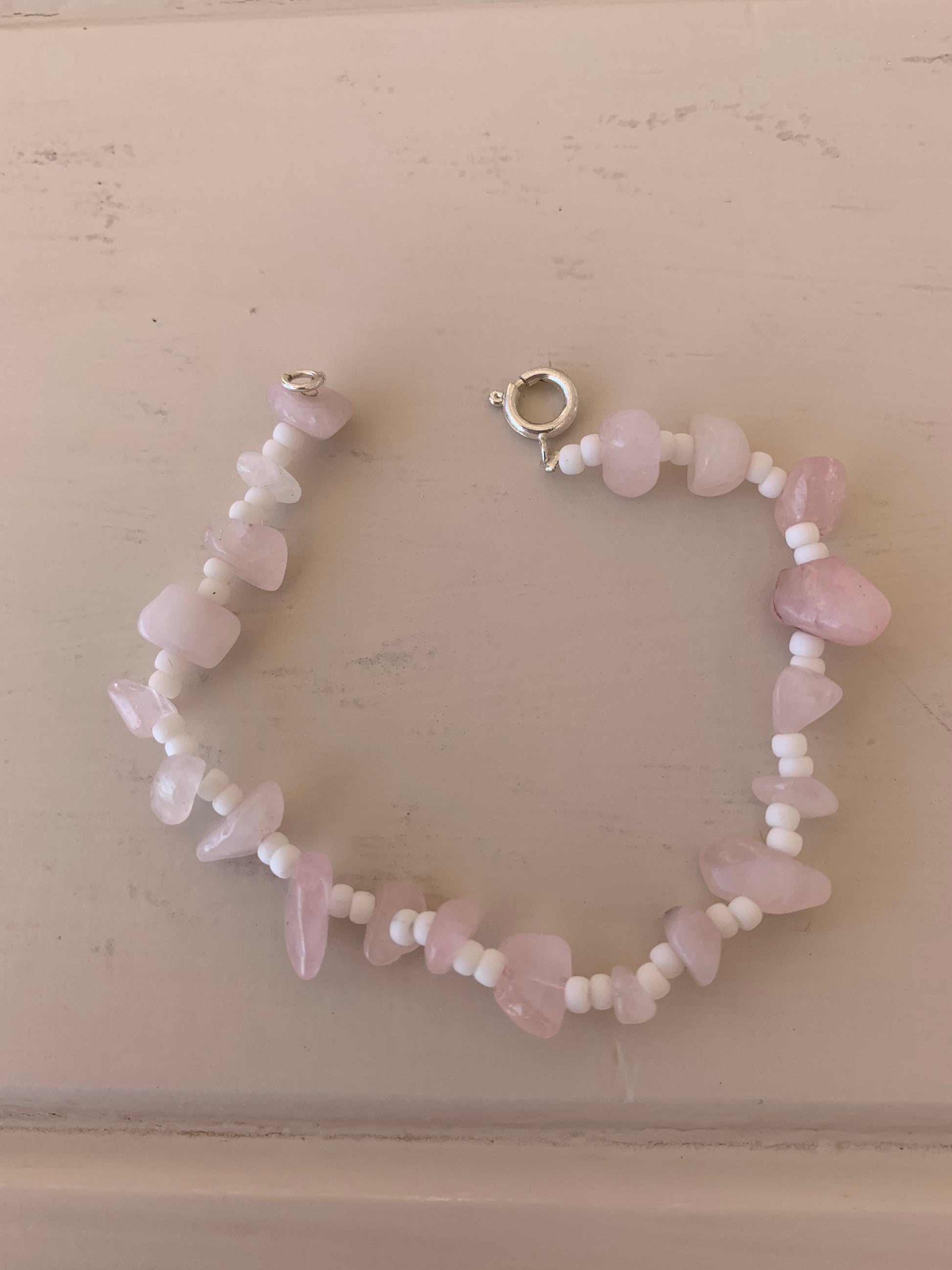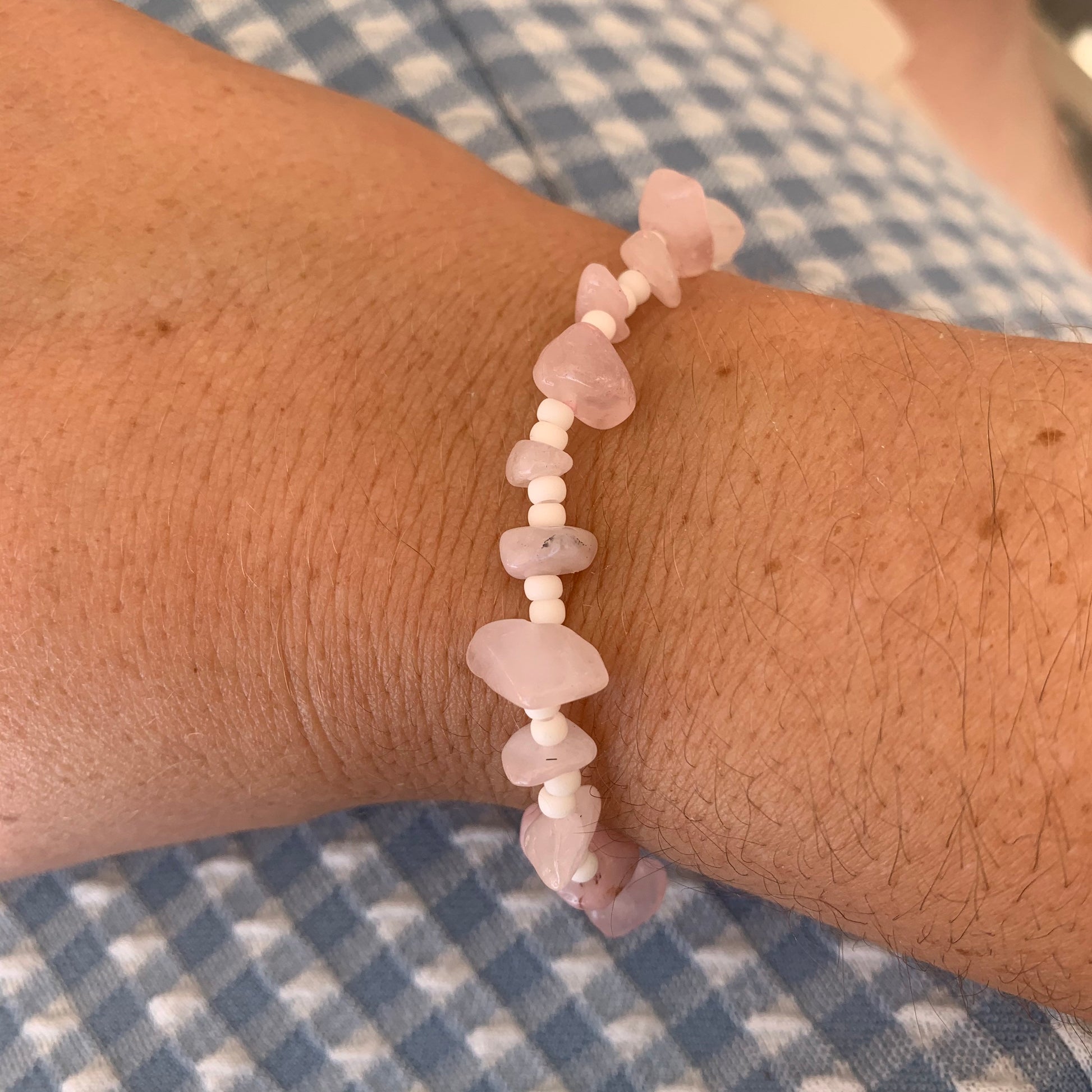 Preciosa pulsera hecha a mano de cuarzo rosa con acabados en plata de primera ley. El cuarzo rosa es conocido por sus propiedades curativas, es la piedra del amor universal. Restaura la confianza en las relaciones, fomentando el amor incondicional. El Cuarzo Rosa ayuda a promover el amor, el amor propio, la amistad, la sanación interior profunda y los sentimientos de paz. El cuarzo rosa es la joya del amor y la amistad, por lo que es el regalo perfecto para un amigo o un ser querido. Cada pieza está hecha a mano en Londres por mí utilizando materiales de la más alta calidad.
