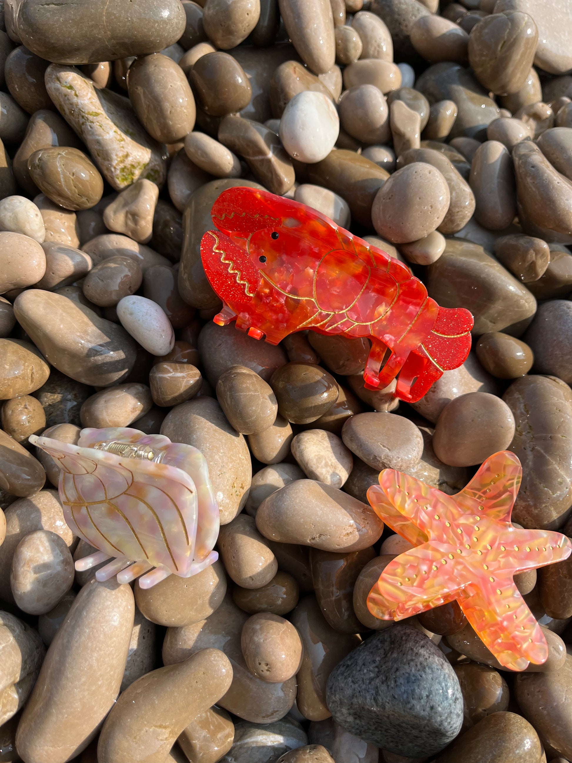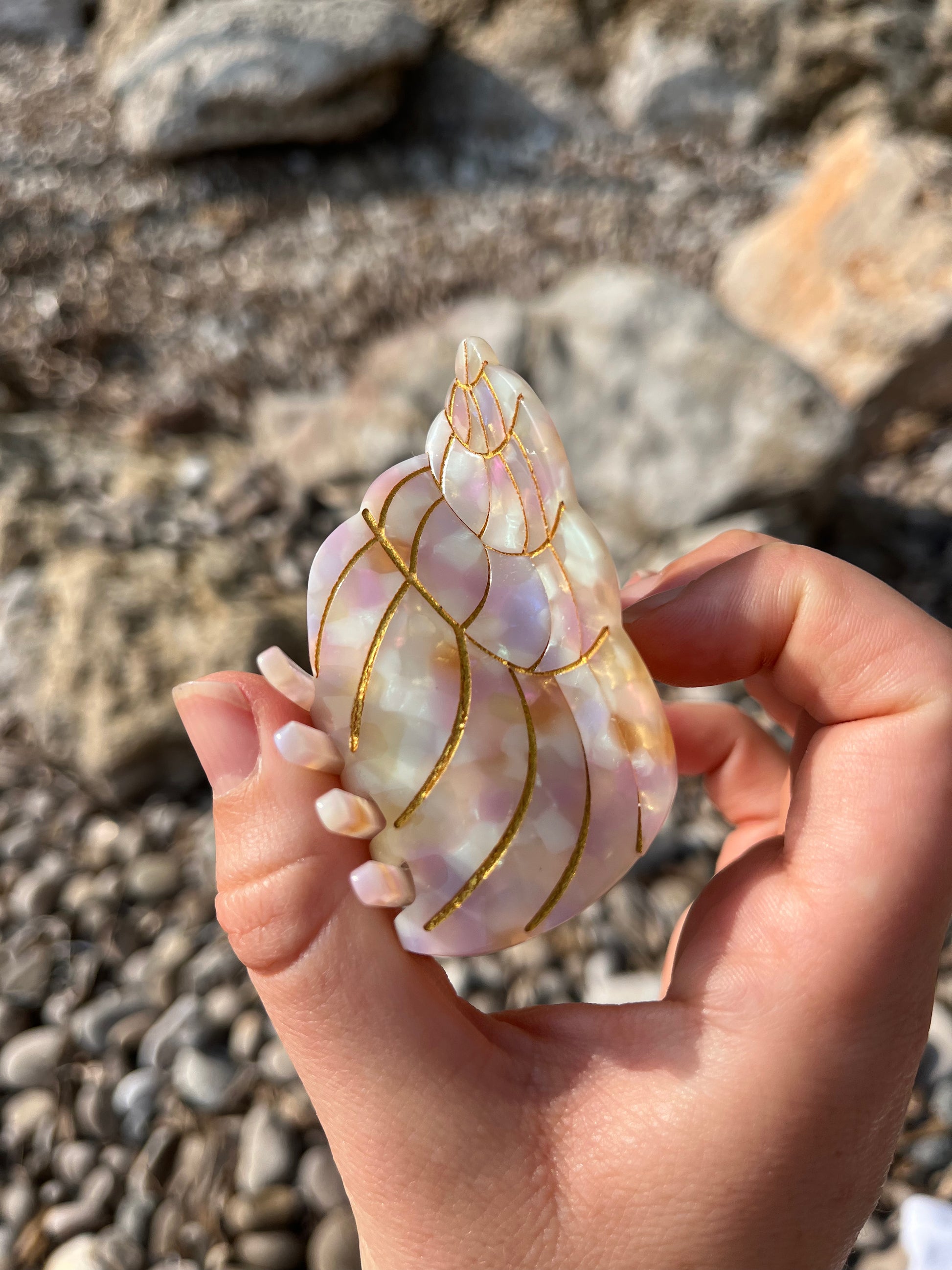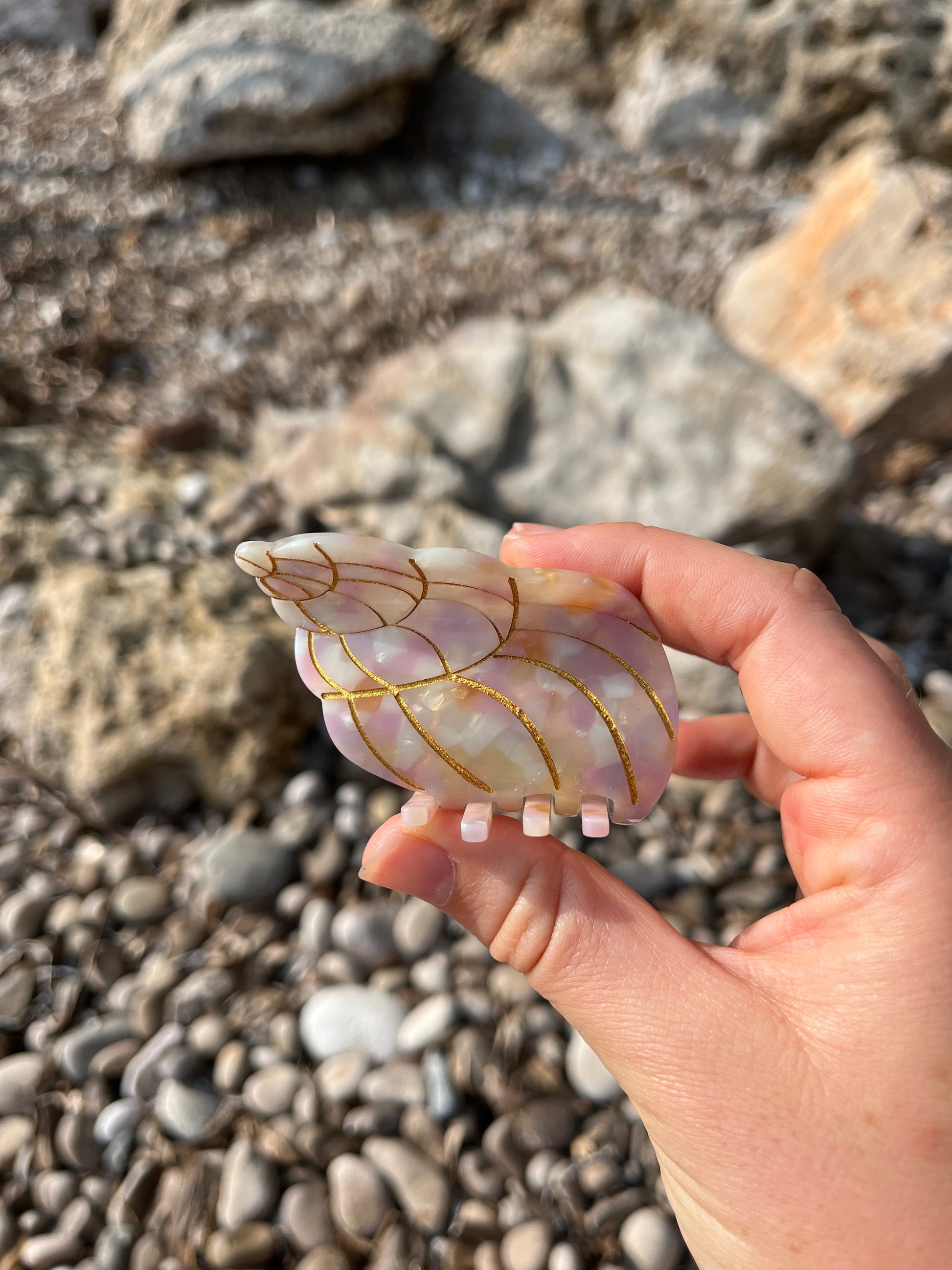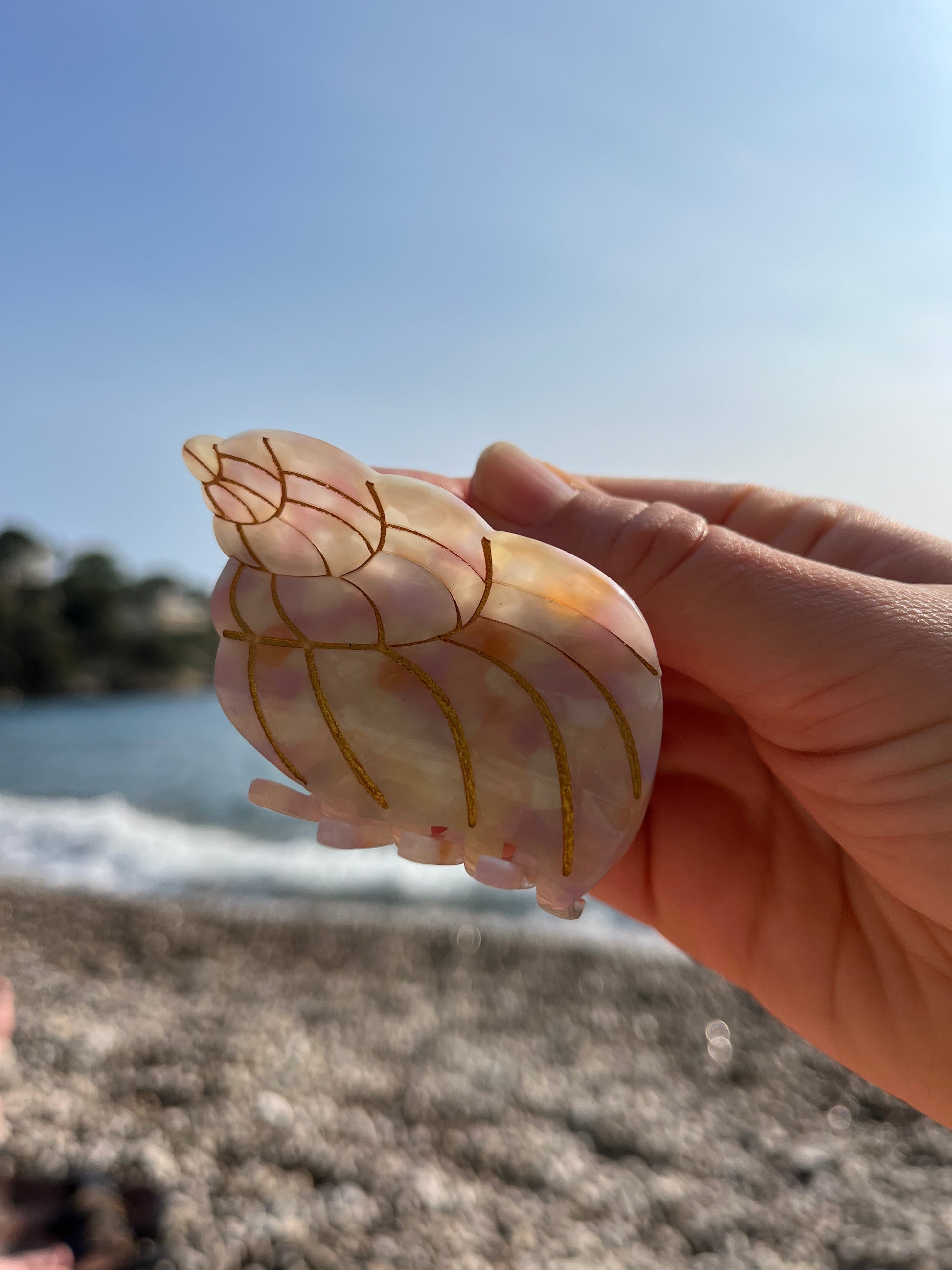 Este clásico clip de concha está fabricado con acetato de la mejor calidad y diseñado para sujetar perfectamente tu cabello. Lo mejor para esos estilos mitad arriba y mitad abajo o para cabello más fino, es súper versátil y está lista para las mejores vibraciones bajo el mar.
