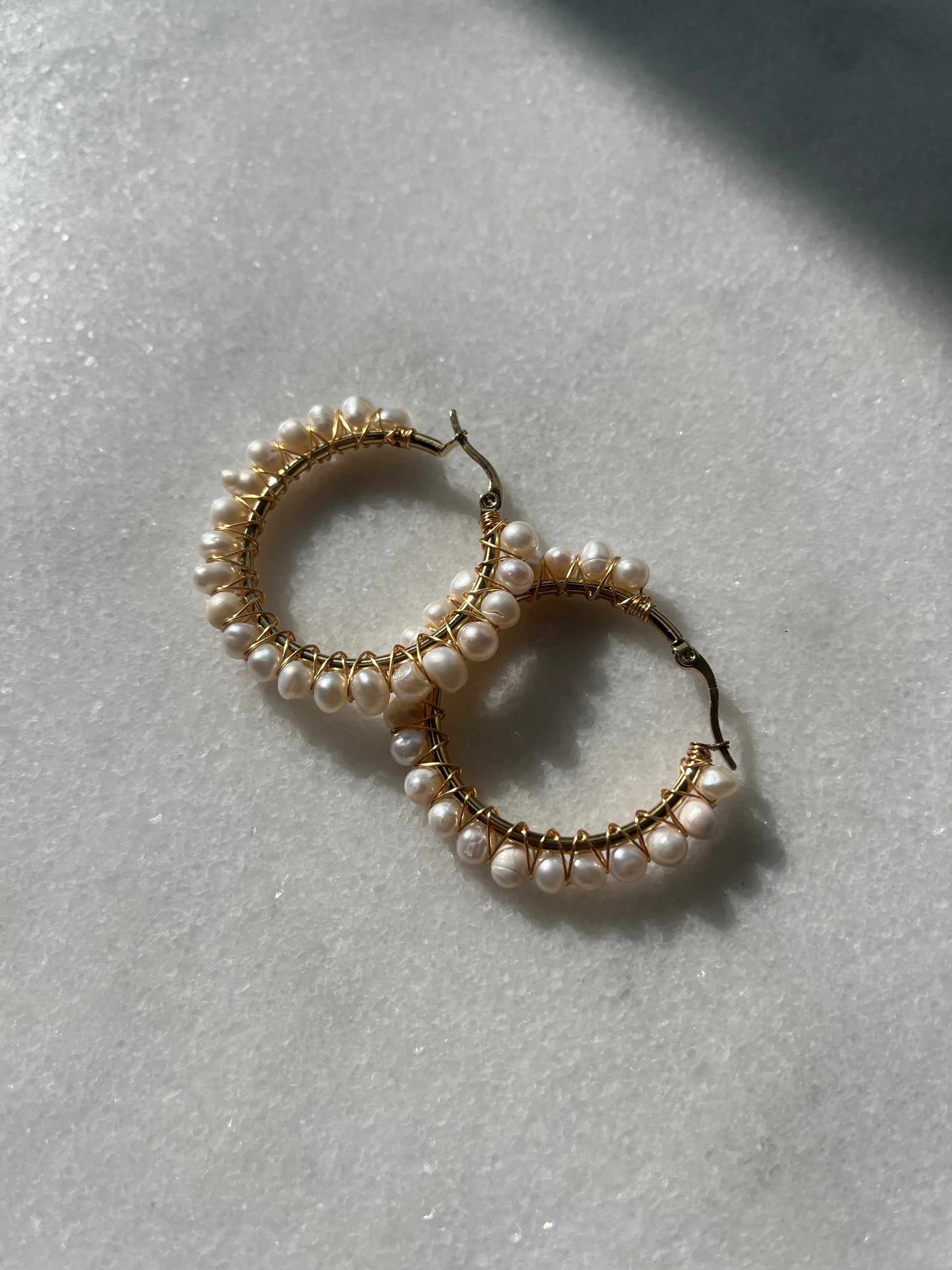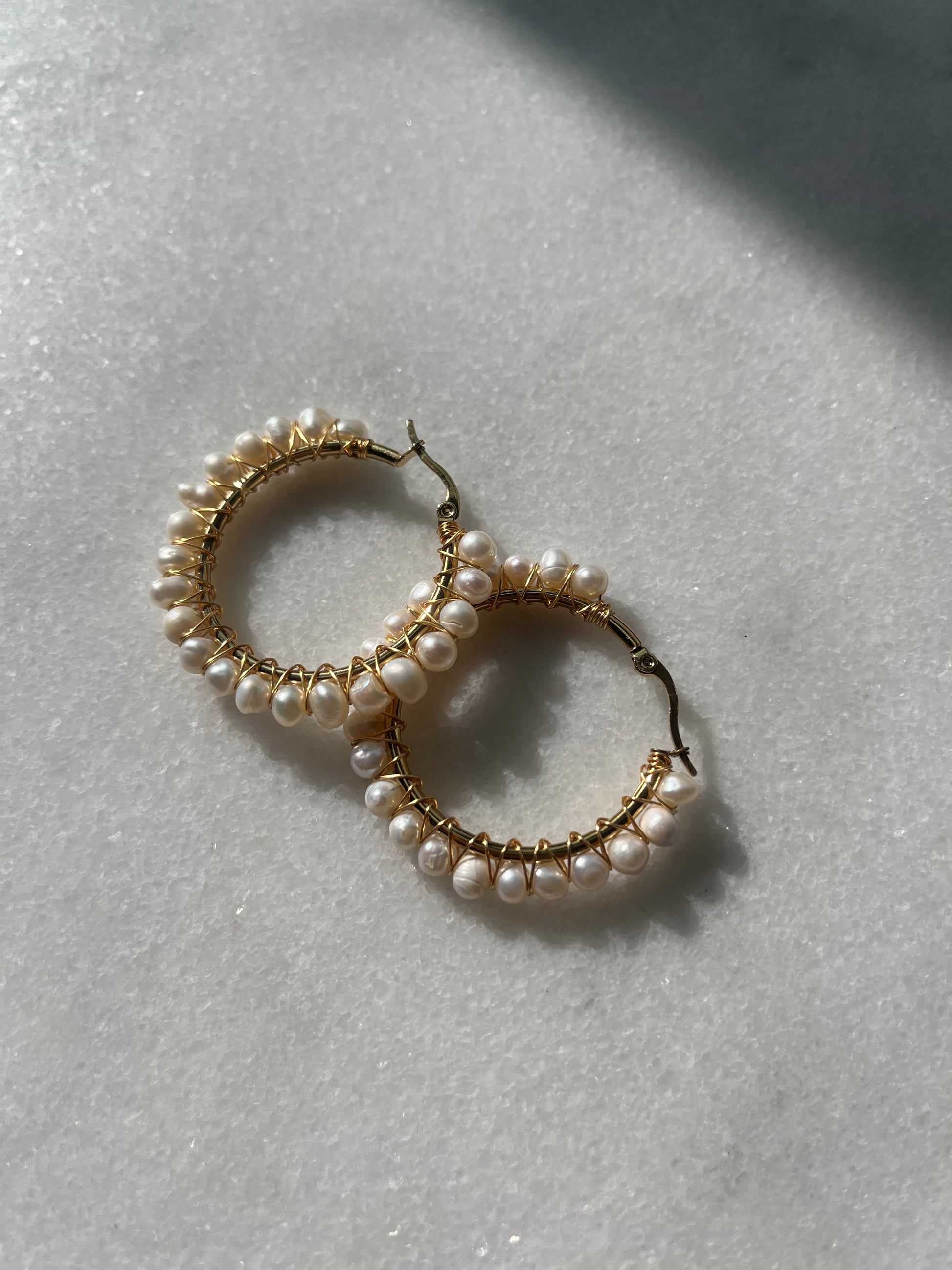 Aros de perlas de agua dulce bañados en oro, el aro más lindo del día a día