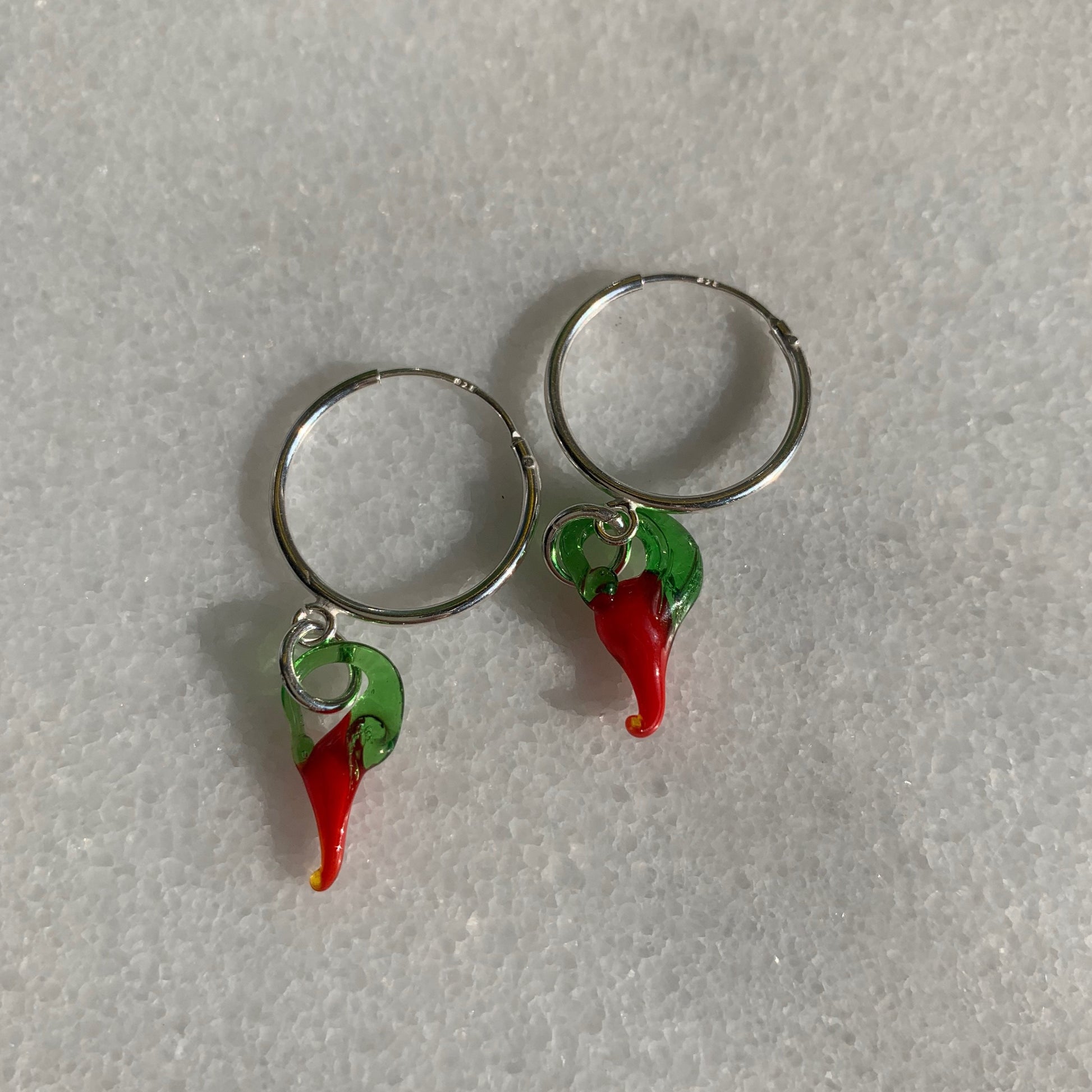 Pendientes hechos a mano en plata de primera ley con guindilla de cristal