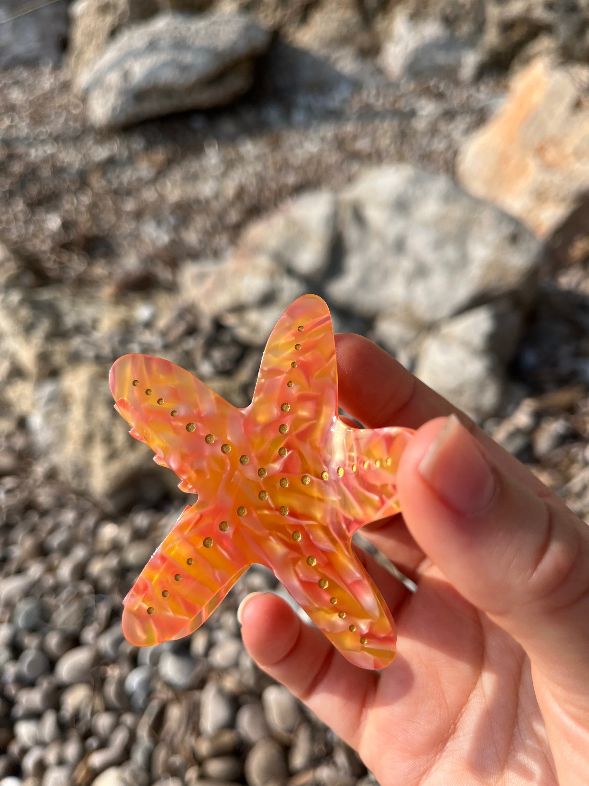 Prepárate para lucir tu cabello perfectamente peinado con este clip Starfish de alta calidad elaborado con acetato de primera calidad. Su diseño versátil es perfecto para peinados medio recogidos, medio recogidos o para aquellos con cabello más fino. Abraza las vibraciones caprichosas del mar con este clip lúdico y divertido.