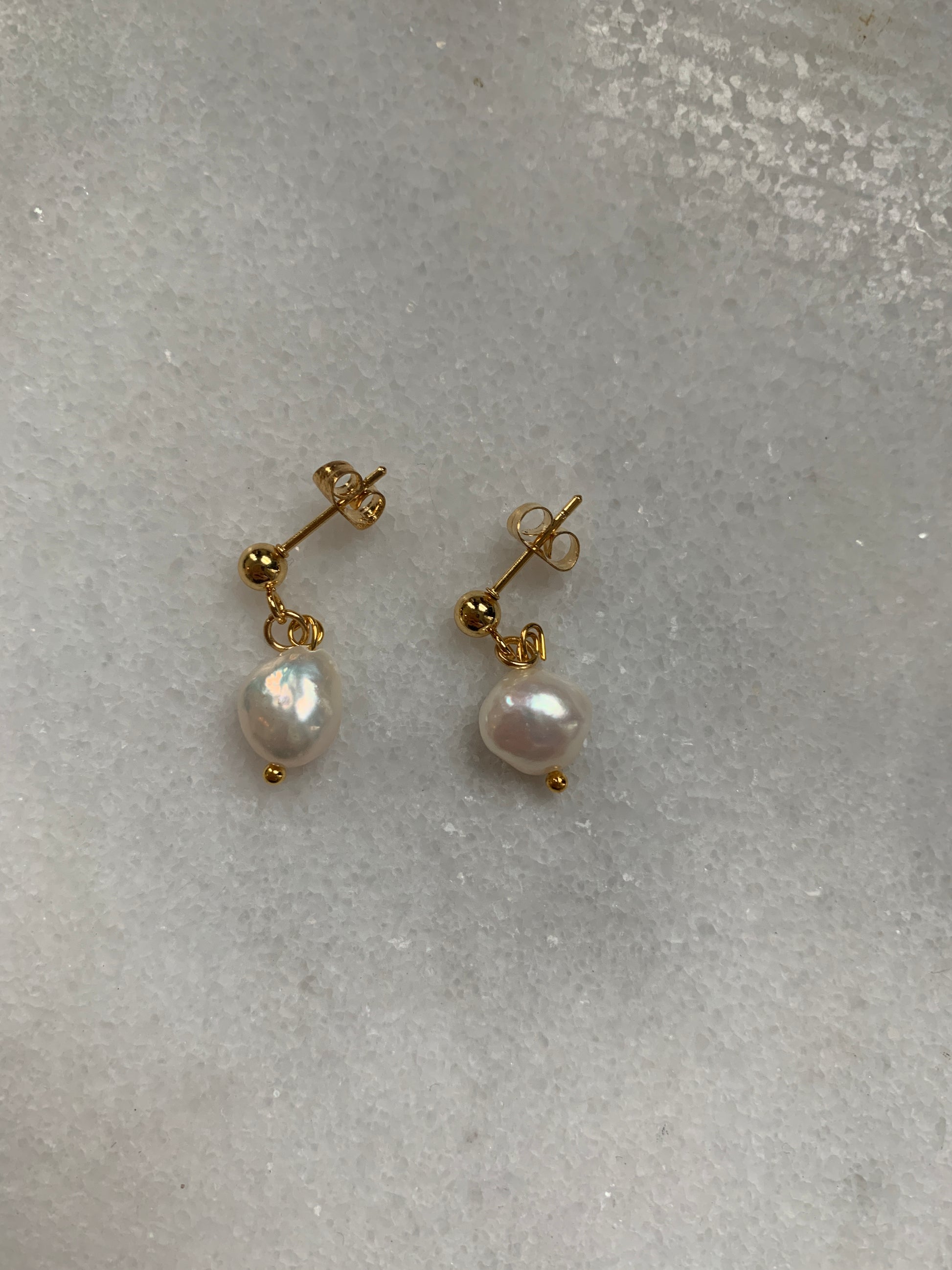 Pendientes colgantes de perlas de agua dulce: hechos con acabados chapados en oro (escríbanos si desea solicitar un baño de oro o un metal más superior)